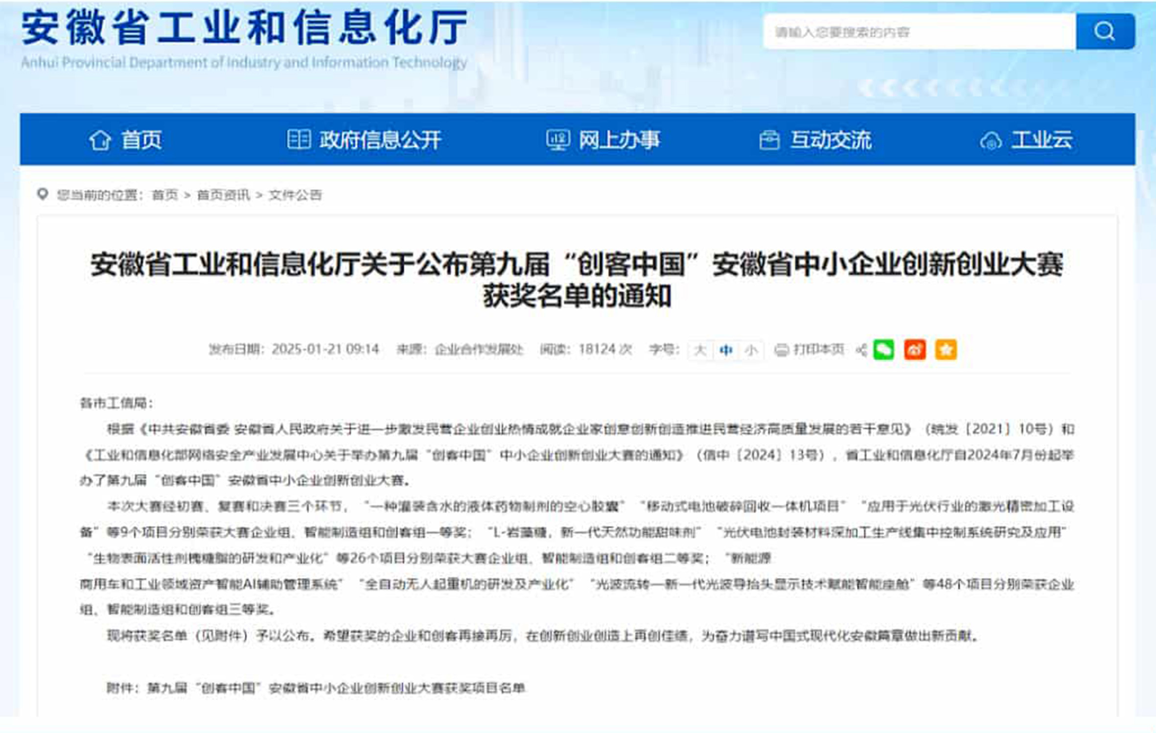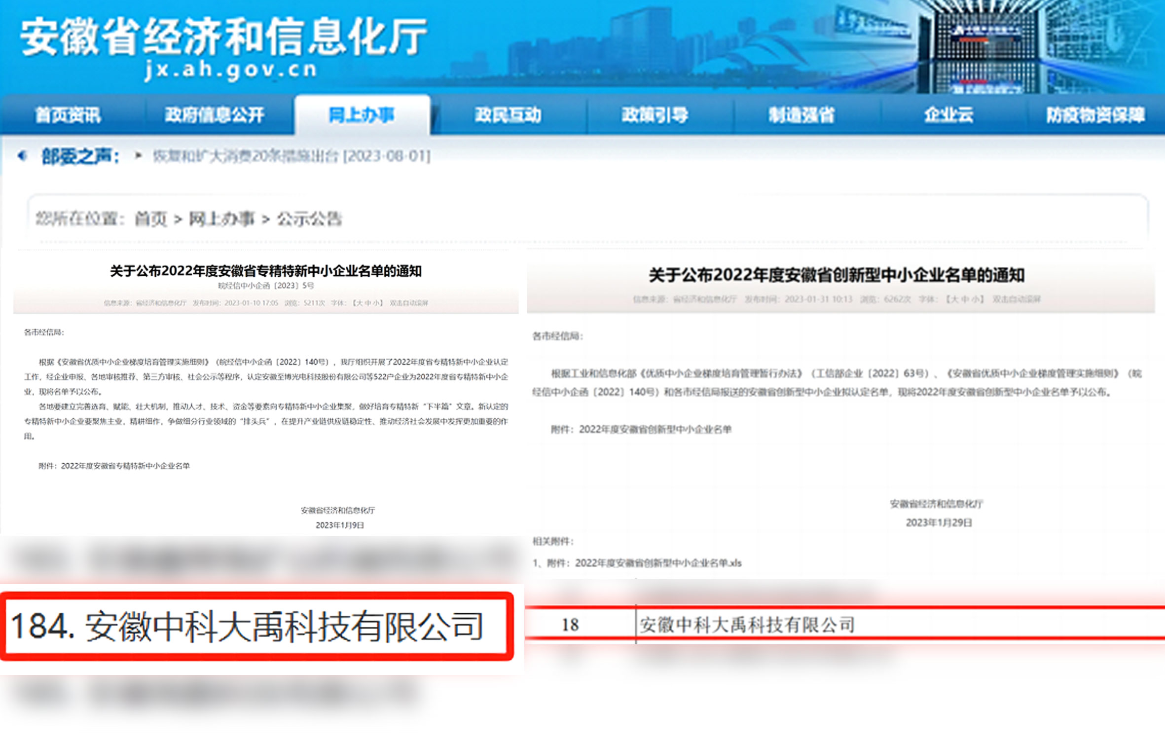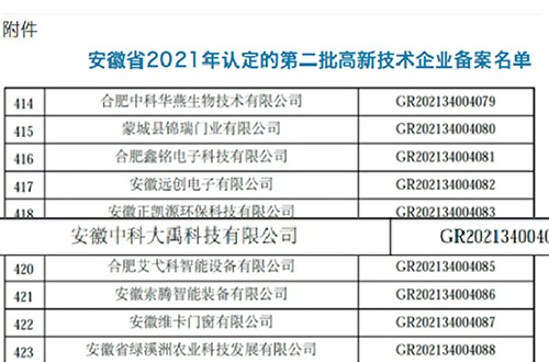 入選2022年度安徽省專精特新中小企業 入選2022年度安徽省創新型中小企業名單