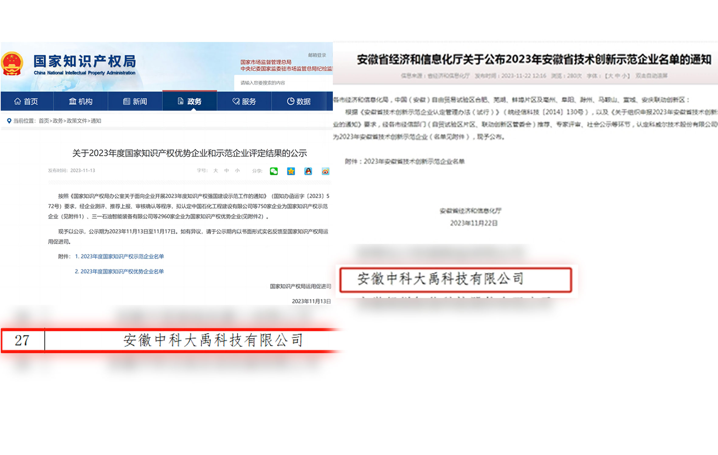 評定為2023年度國家知識產權優勢企業 入選2023年安徽省技術創新示范企業名單