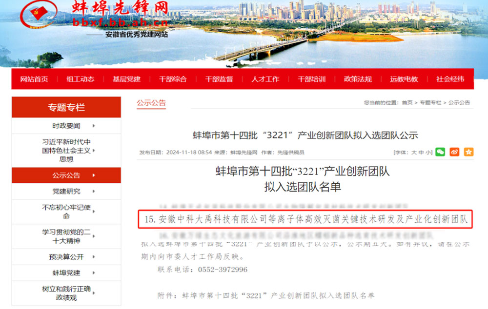 中科大禹入選蚌埠市第十四批“3221”產業創新團隊